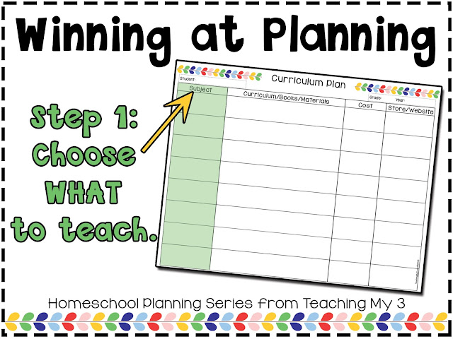 This step is just choosing what to teach, not choosing the curriculum that you will use for each subject. That's the next step. This step is choosing subjects and possibly even narrowing it down to a particular course. Instead of just math, you might write Algebra. Instead of history, you might write Ancient Civilizations.
